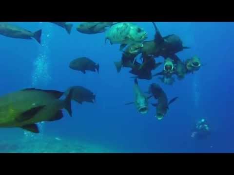 Key West Spearfishing, Goliath Grouper eats Mangrove Snapper - Black Snapper Eating - June 2015 free dive spearfishing key west primarily hunting black grouper, mangrove snapper and mutton snapper.